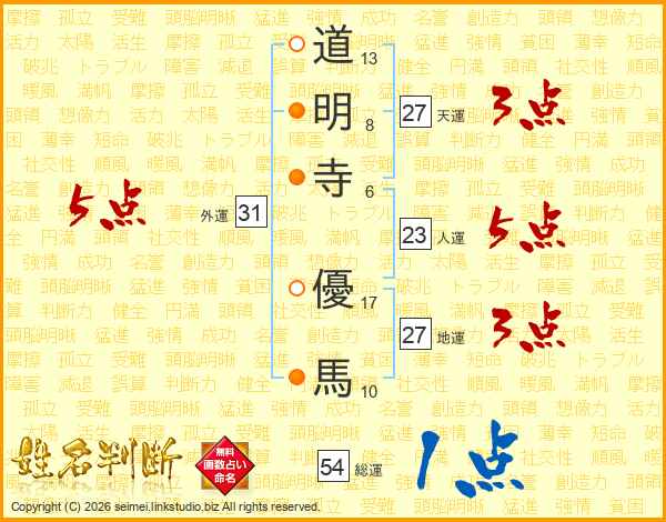 道明寺優馬さんの総運は54画の1点!