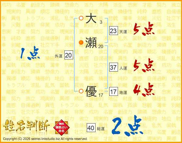 大瀬優さんの天運は23画の5点!
