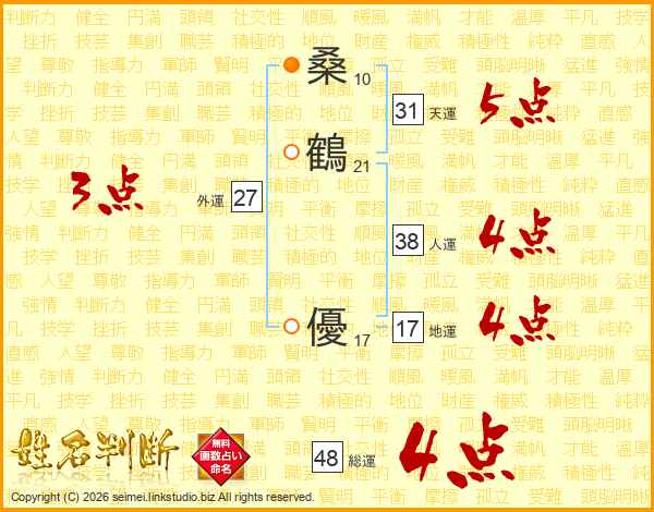 桑鶴優さんの天運は31画の5点!