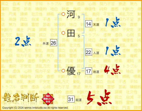 河田優さんの総運は31画の5点!