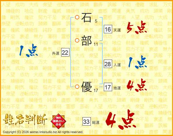 石部優さんの総運は33画の4点!