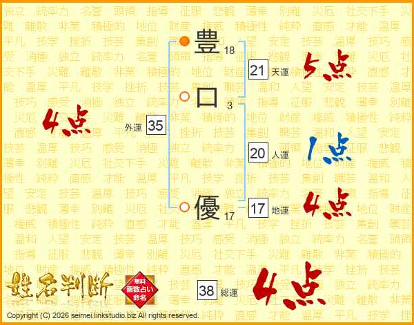 豊口優さんの総運は38画の4点!