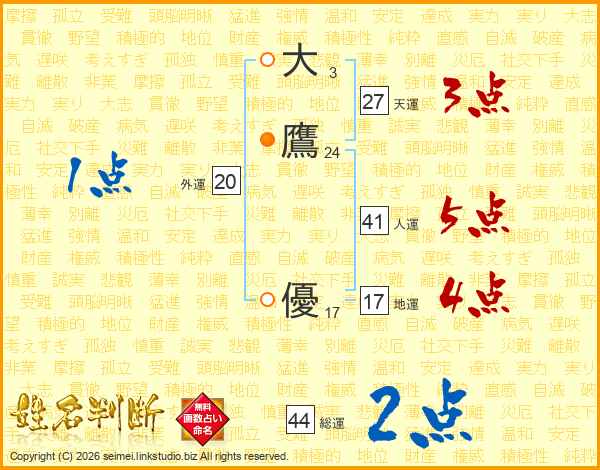 大鷹優さんの総運は44画の2点!