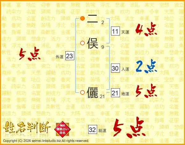 二俣儷さんの総運は32画の5点!