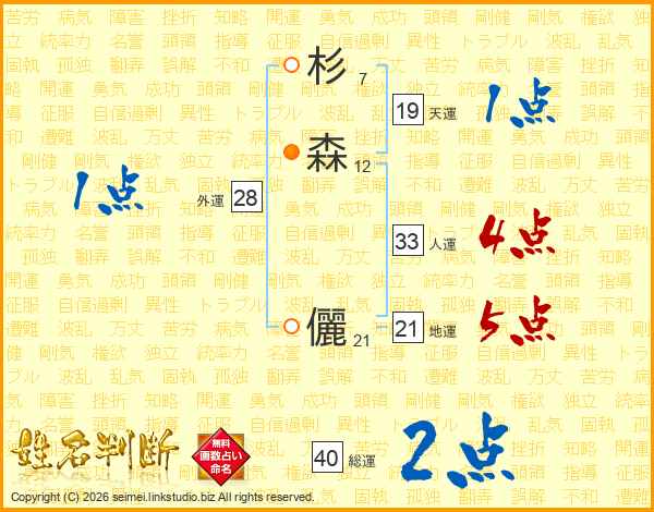 杉森儷さんの人運は33画の4点!