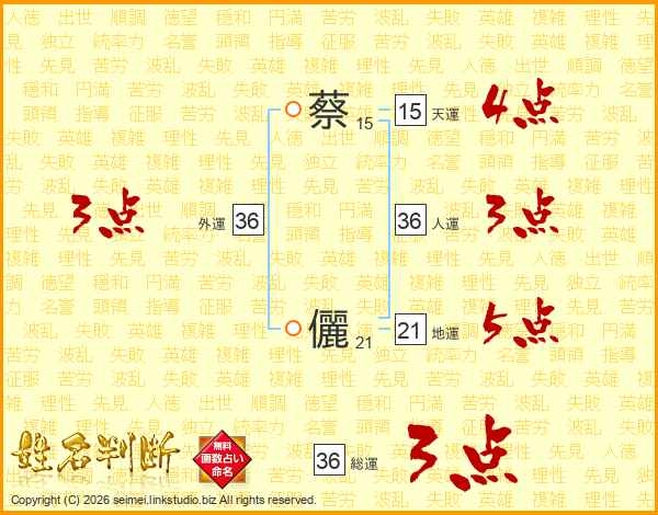 蔡儷さんの総運は36画の3点!