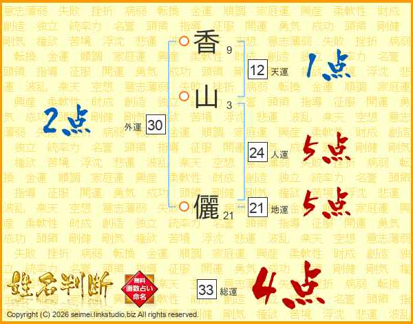香山儷さんの総運は33画の4点!