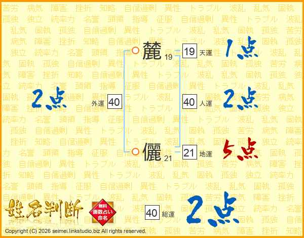 麓儷さんの総運は40画の2点!