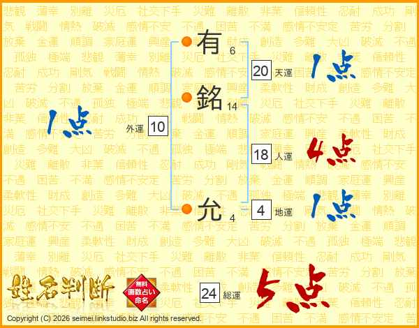 有銘允さんの総運は24画の5点!