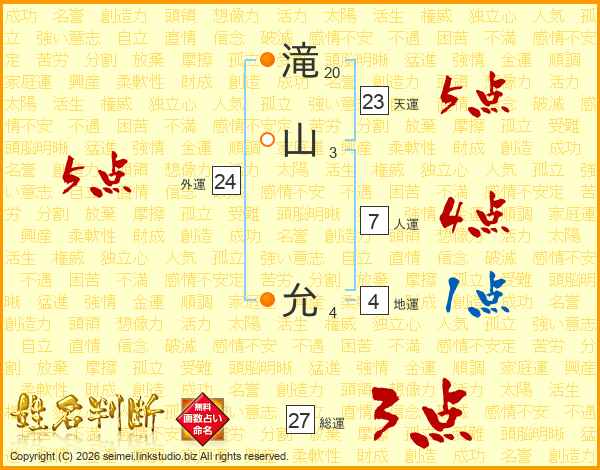 滝山允さんの天運は23画の5点!