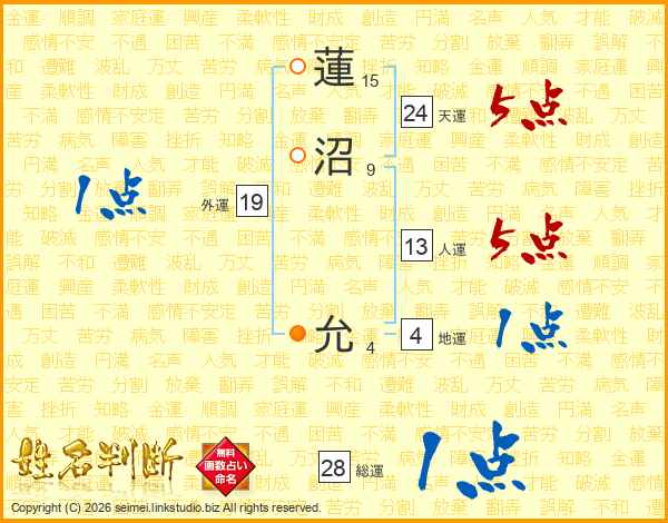 蓮沼允さんの人運は13画の5点!