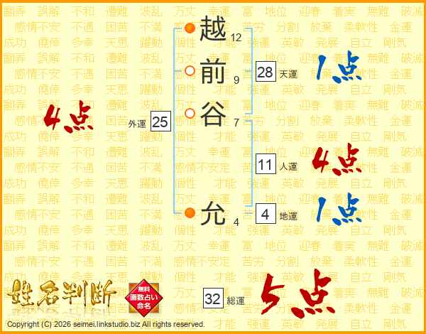 越前谷允さんの総運は32画の5点!