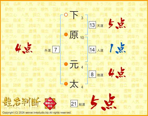 下原元太さんの総運は21画の5点!