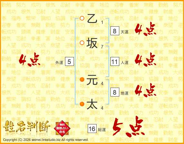 乙坂元太さんの総運は16画の5点!