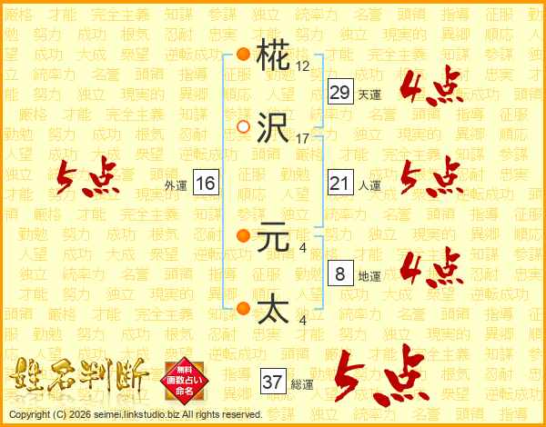 椛沢元太さんの総運は37画の5点!