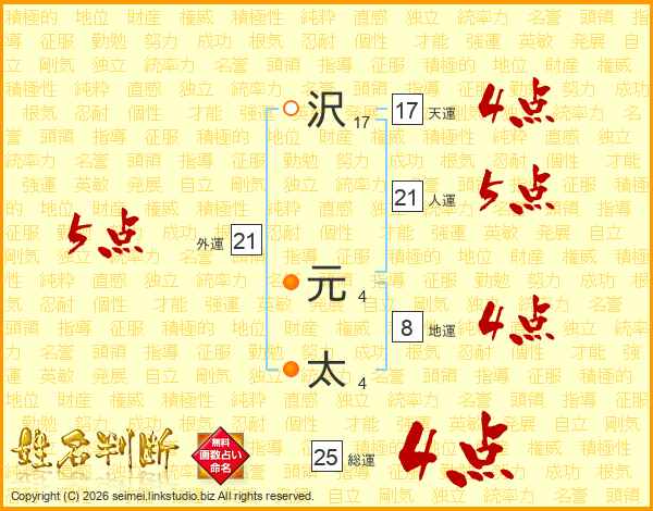 沢元太さんの総運は25画の4点!
