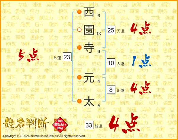 西園寺元太さんの総運は33画の4点!