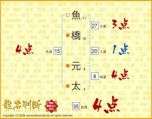 魚橋元太さんの総運は35画の4点!
