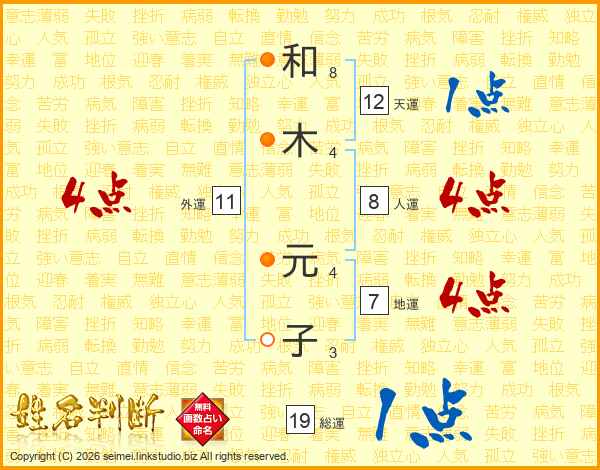 和(8画)木(4画) 元(4画)子(3画)