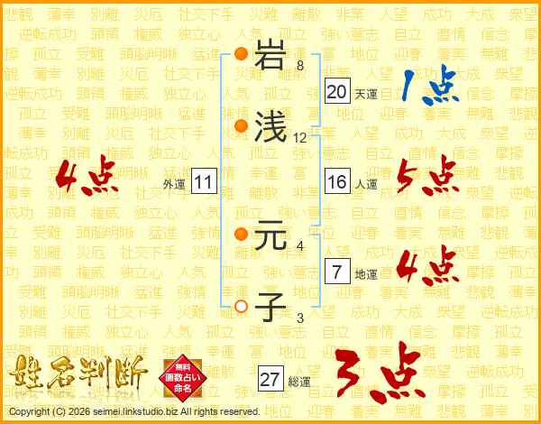 岩(8画)浅(12画) 元(4画)子(3画)