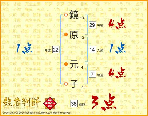 鏡原元子さんの天運は29画の4点!