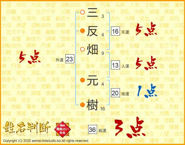 三(3画)反(4画)畑(9画) 元(4画)樹(16画)
