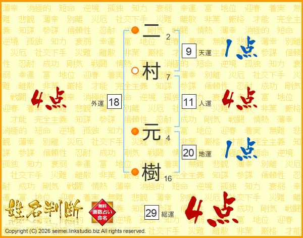 二村元樹さんの人運は11画の4点!