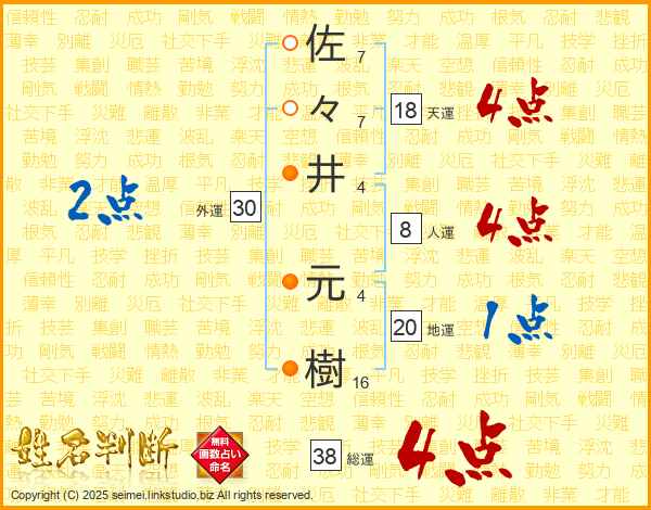 佐々井元樹さんの総運は38画の4点!
