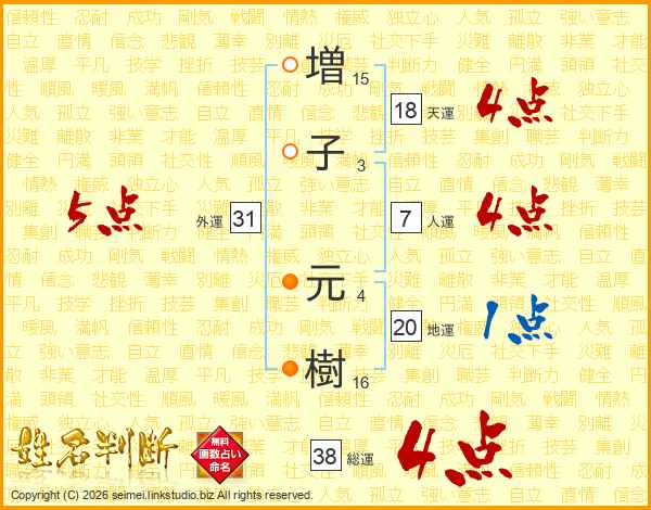 増子元樹さんの総運は38画の4点!
