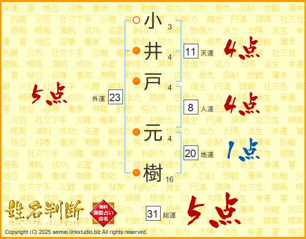小(3画)井(4画)戸(4画) 元(4画)樹(16画)