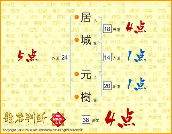 居城元樹さんの総運は38画の4点!