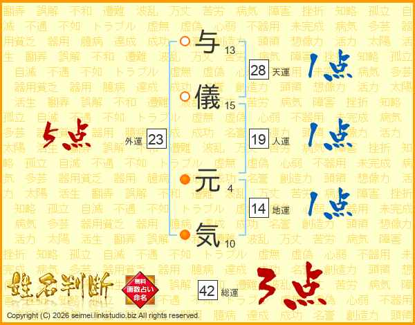 与儀元気さんの人運は19画の1点!