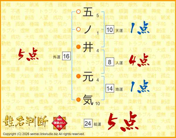 五ノ井元気さんの外運は16画の5点!