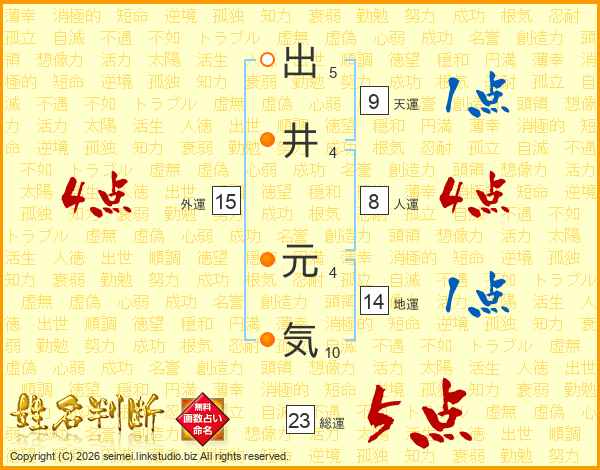 出井元気さんの総運は23画の5点!