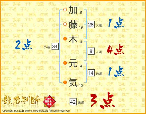 加藤木元気さんの総運は42画の3点!