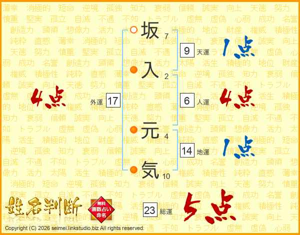 坂入元気さんの外運は17画の4点!