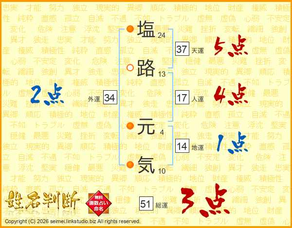 塩路元気さんの総運は51画の3点!