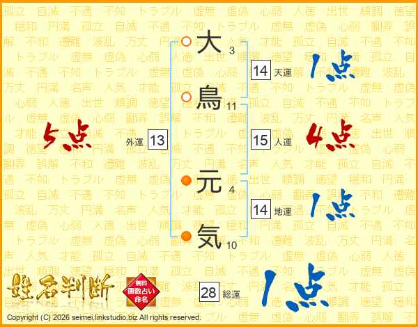 大鳥元気さんの天運は14画の1点!