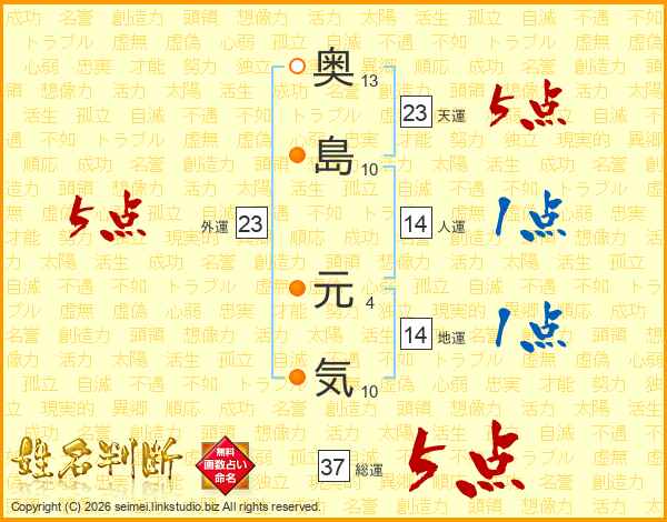 奥島元気さんの総運は37画の5点!