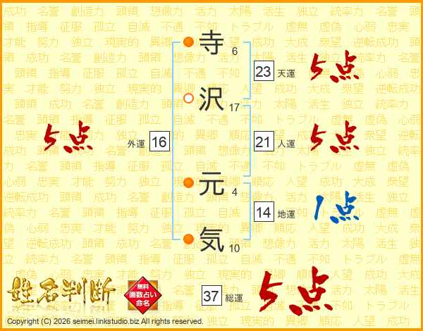 寺沢元気さんの総運は37画の5点!