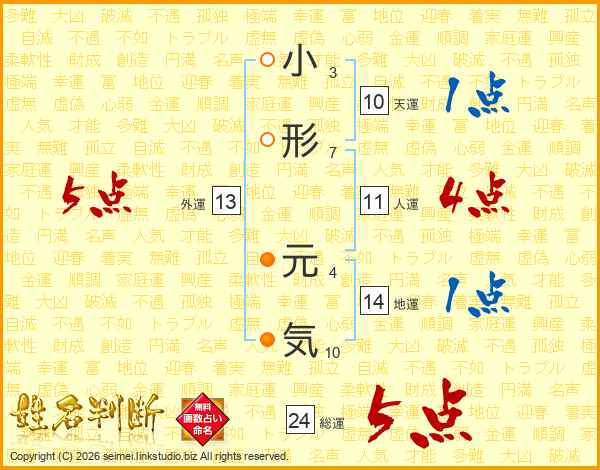 小形元気さんの総運は24画の5点!