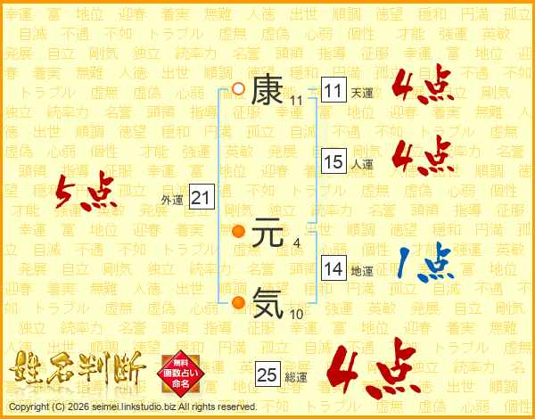 康元気さんの総運は25画の4点!