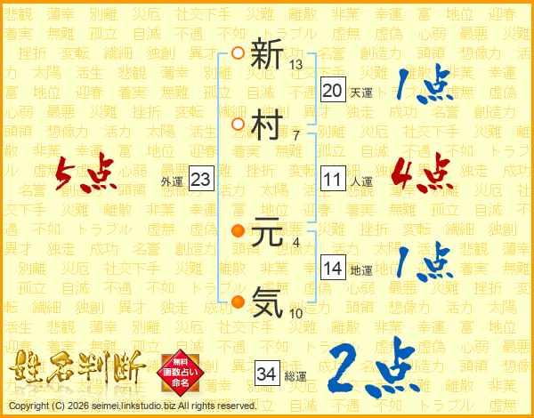 新村元気さんの天運は20画の1点!