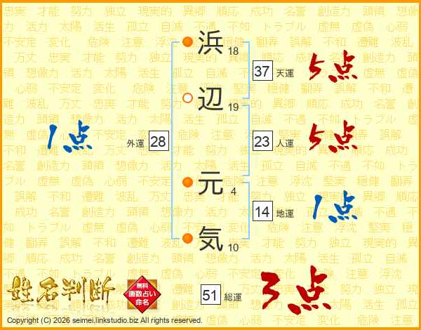浜辺元気さんの総運は51画の3点!