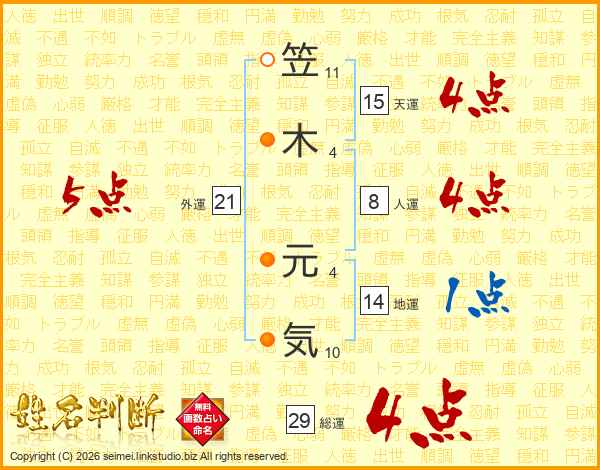 笠木元気さんの総運は29画の4点!