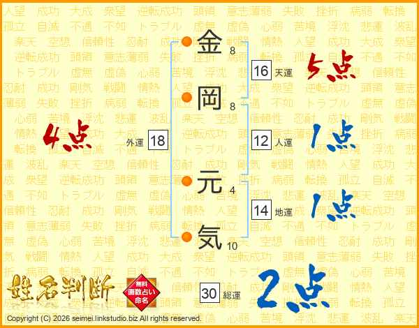 金岡元気さんの総運は30画の2点!
