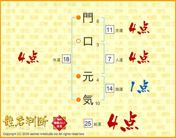 門口元気さんの総運は25画の4点!
