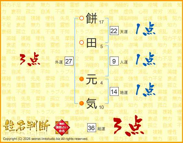 餅田元気さんの総運は36画の3点!