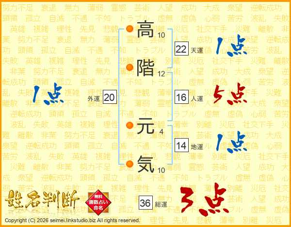 高階元気さんの天運は22画の1点!