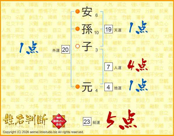 安孫子元さんの総運は23画の5点!